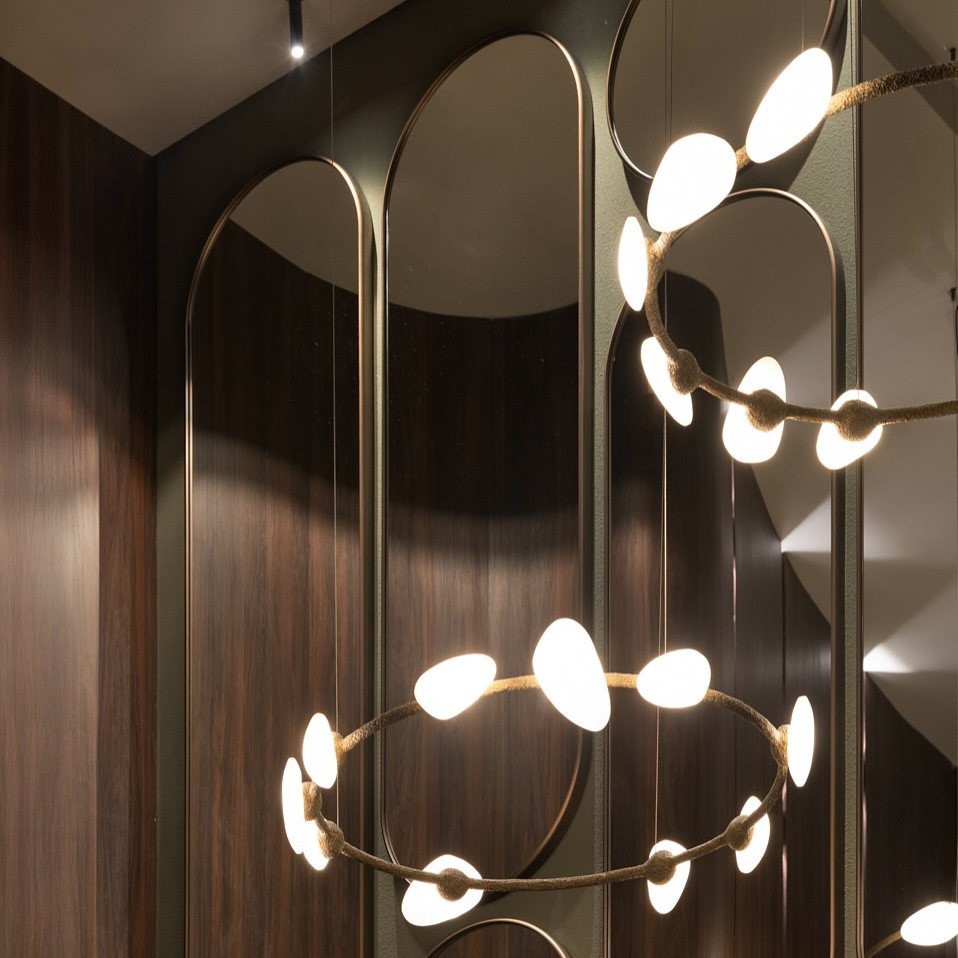 Inspirada na figura enigmática da Pítia, a sacerdotisa de Apolo, a coleção Delphi reflete o caráter profético desse mito. Assim como as palavras da Pítia emergiam das profundezas da terra, envoltas em mistério, a coleção Delphi expressa essa dualidade de forças, com um contraste marcante entre a rigidez escultural das formas geométricas e a fluidez do quartzo branco. Cada elemento evoca a conexão entre o terreno e o divino, entre o previsível e o desconhecido.
