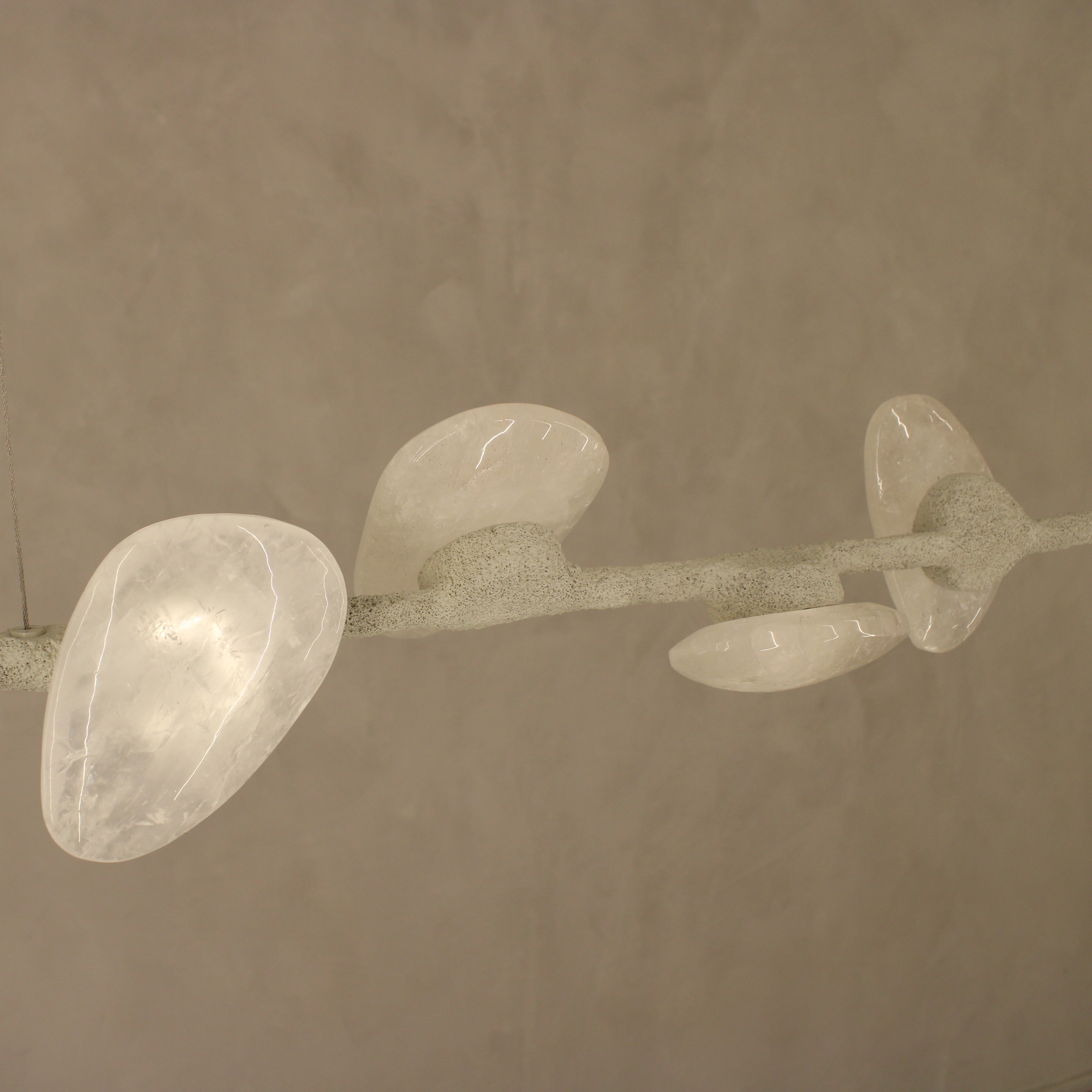 Inspirada na figura enigmática da Pítia, a sacerdotisa de Apolo, a coleção Delphi reflete o caráter profético desse mito. Assim como as palavras da Pítia emergiam das profundezas da terra, envoltas em mistério, a coleção Delphi expressa essa dualidade de forças, com um contraste marcante entre a rigidez escultural das formas geométricas e a fluidez do quartzo branco. Cada elemento evoca a conexão entre o terreno e o divino, entre o previsível e o desconhecido.