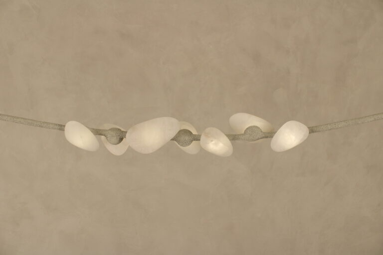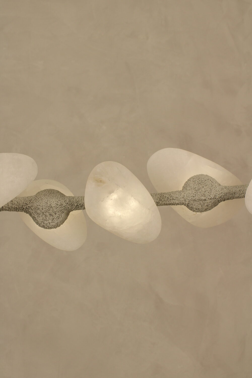 Inspirada na figura enigmática da Pítia, a sacerdotisa de Apolo, a coleção Delphi reflete o caráter profético desse mito. Assim como as palavras da Pítia emergiam das profundezas da terra, envoltas em mistério, a coleção Delphi expressa essa dualidade de forças, com um contraste marcante entre a rigidez escultural das formas geométricas e a fluidez do quartzo branco. Cada elemento evoca a conexão entre o terreno e o divino, entre o previsível e o desconhecido.