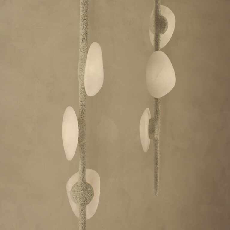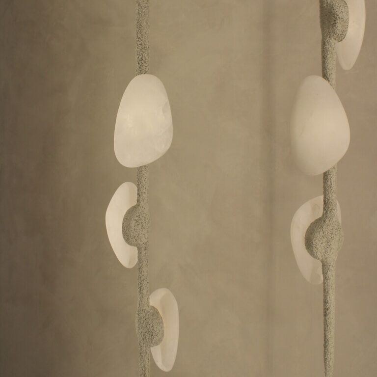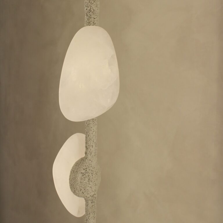 Inspirada na figura enigmática da Pítia, a sacerdotisa de Apolo, a coleção Delphi reflete o caráter profético desse mito. Assim como as palavras da Pítia emergiam das profundezas da terra, envoltas em mistério, a coleção Delphi expressa essa dualidade de forças, com um contraste marcante entre a rigidez escultural das formas geométricas e a fluidez do quartzo branco. Cada elemento evoca a conexão entre o terreno e o divino, entre o previsível e o desconhecido.