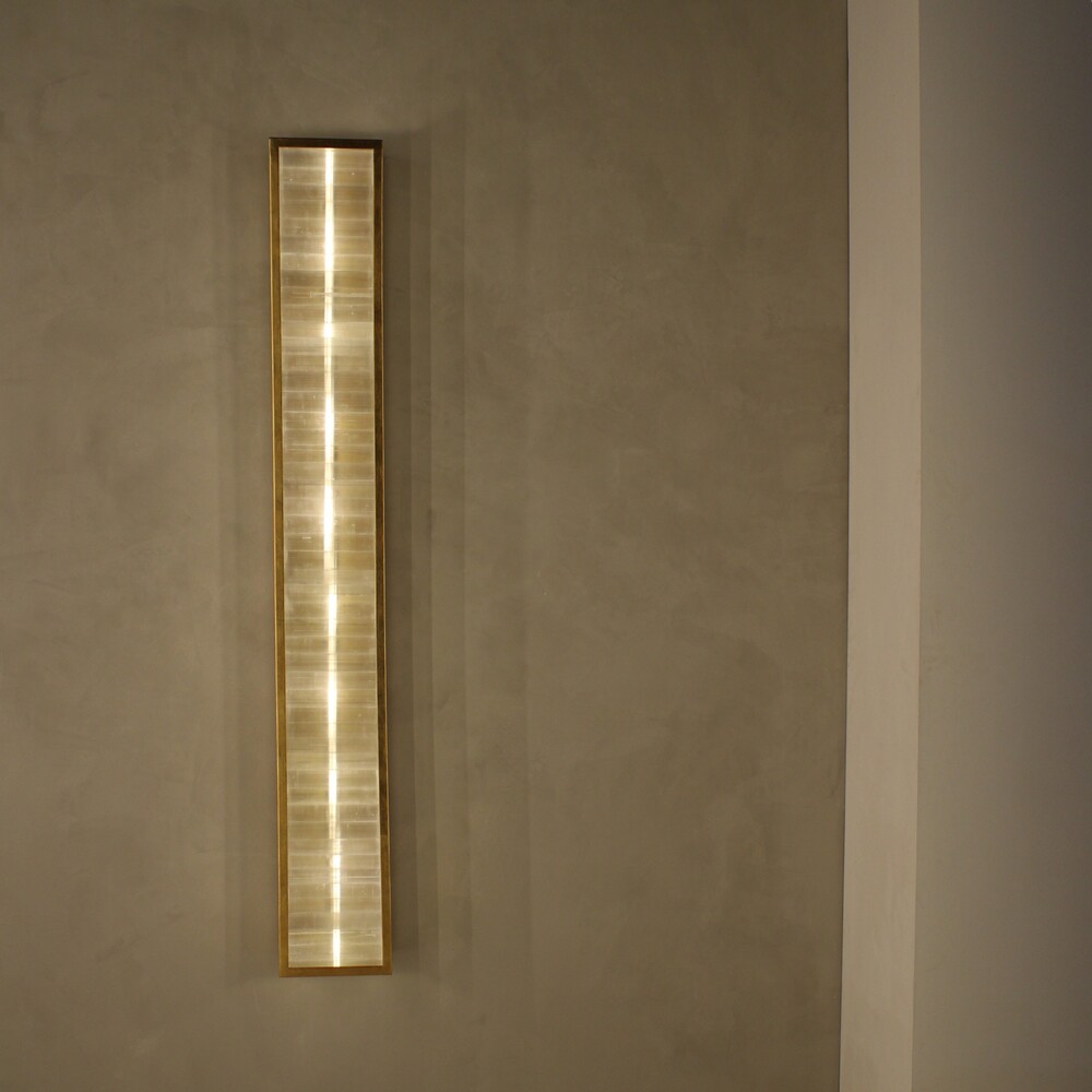 Arandela com um lindo trabalho manual feito com lascas de rocha selenita.