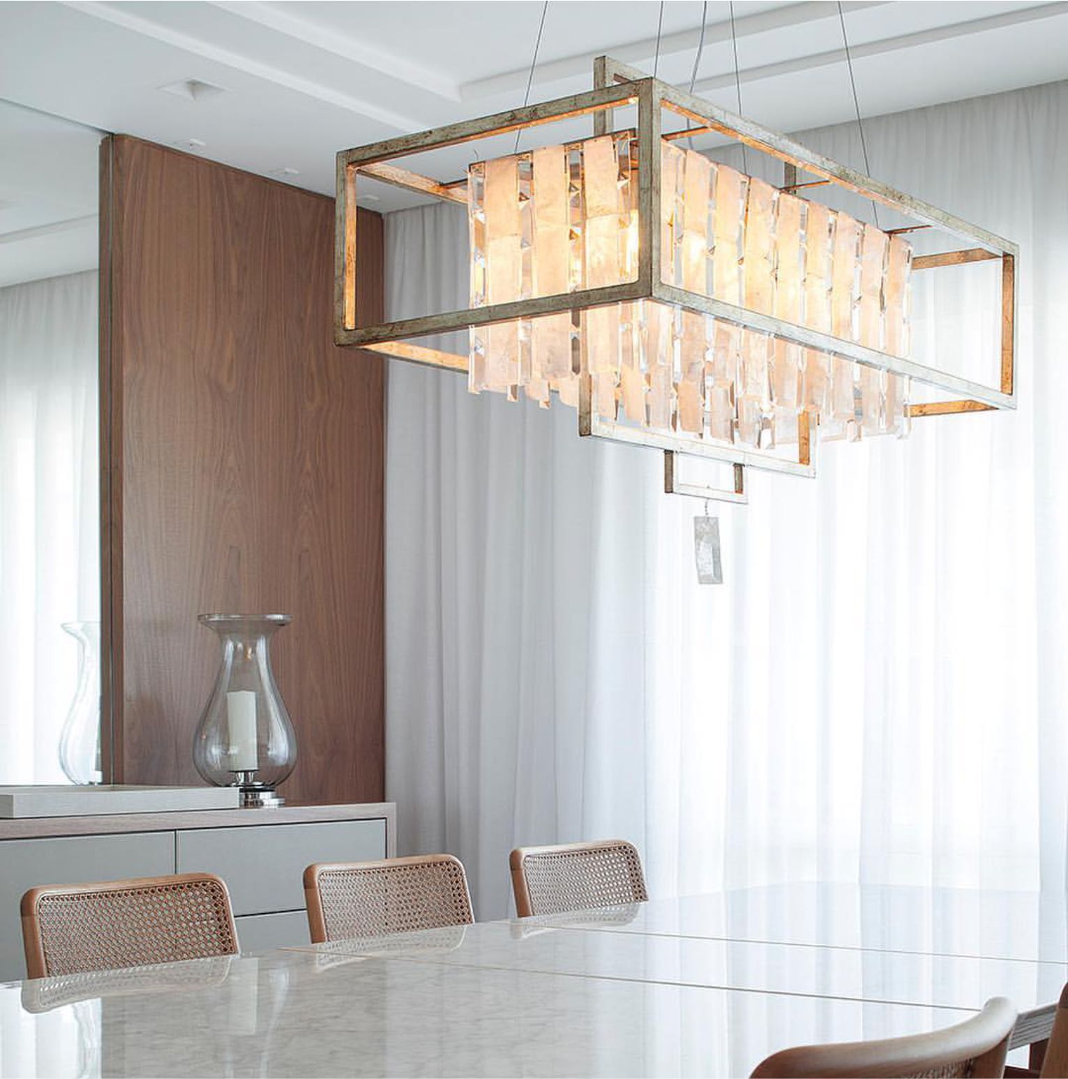 Pendente de estética geométrica, composto por placas retangulares de cristal de rocha natural e cristal lapidado. Inspirado na elegância atemporal do movimento Art Déco, o design explora simetria, brilho e sofisticação em uma composição escultural.
