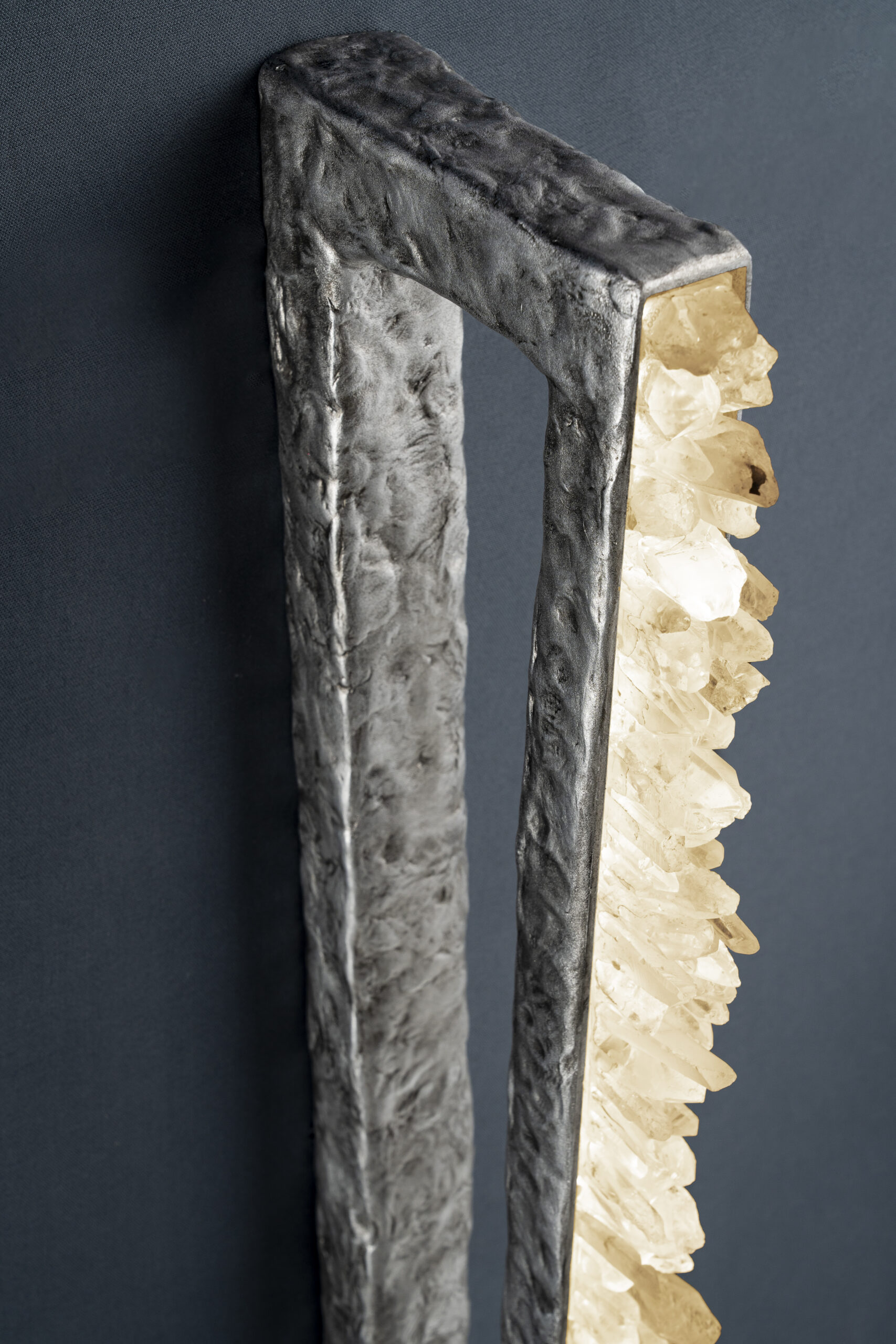 A série de luminárias Thebes nasceu inspirada na mitologia grega de Cadmus, fundador da cidade de Tebas. O design geométrico é minimalista no design mas maximalista no efeito, ressificando o conceito do tradicional lustre deslocando a fonte de luz do interior para suas extremidades que possuem centenas de pontas de quartzo que emitem uma luz quente e acolhedora. Os conceitos da arquitetura clássica grega são características marcantes dessa coleção como a racionalidade, ordem, beleza e geometria.